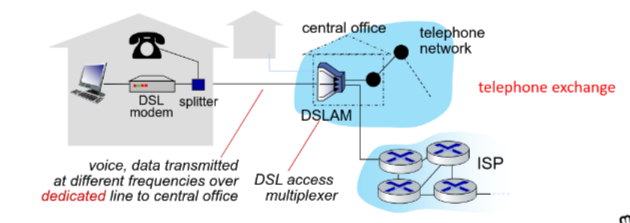 - use existing telephone line (Data over DSL, voice over DSL)