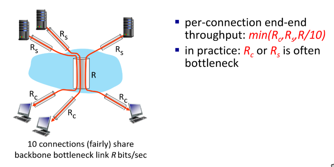 - Throughput rate (bits/time) at which bits are being sent from sender to receiver