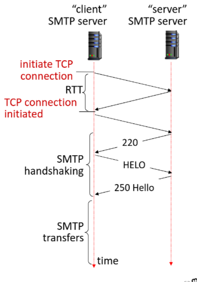 - SMTP: delivery/storage of e-mail messages to receiver’s server