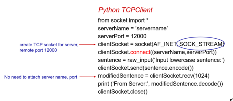 - client create socket to IP address, port number