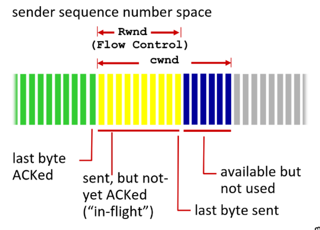 rwnd(receive window) field in TCP header - sender limits amount of unACKed dita to received