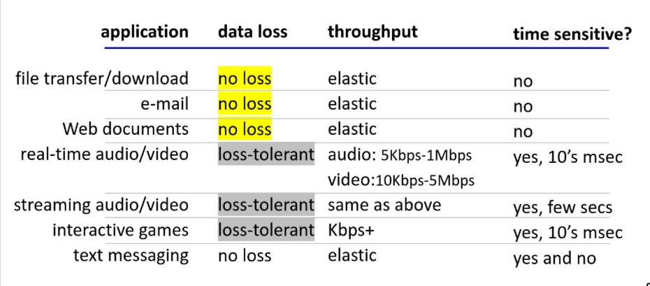 Data Integrity: Does the app require 100% reliable data transfer (like file transfer, web transactions)? Or can it tolerate some loss (like real-time audio/video)?