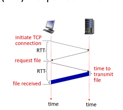- Response Time = 2 Round-trip time (RTT) + file transmission time